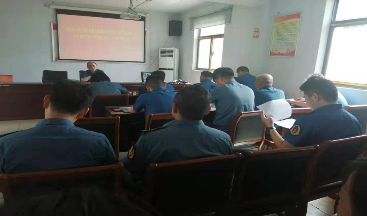 为确保交通运输执法领域突出问题专项整治行动工作抓出实实在在效果,5月28日下午,二七大队全体人员在二七区交通局三楼组织开展整治行动再动员部署会,赵广明大队长主持会议并讲话,大队全体人员参加。