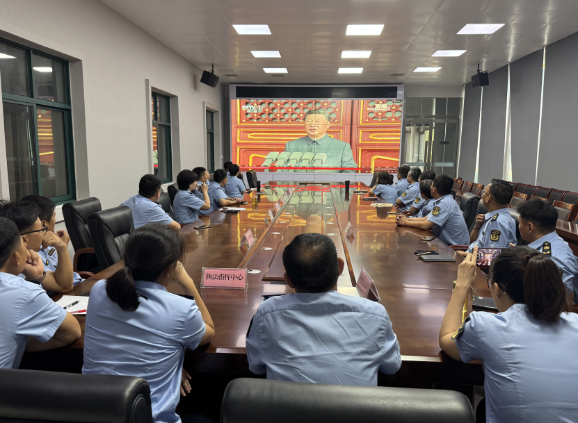 9月3日上午,纪念中国人民抗日战争暨世界反法西斯战争胜利80周年大会在北京天安门广场隆重举行。执法支队按照上级要求,组织支队全体人员认真收听收看大会盛况。