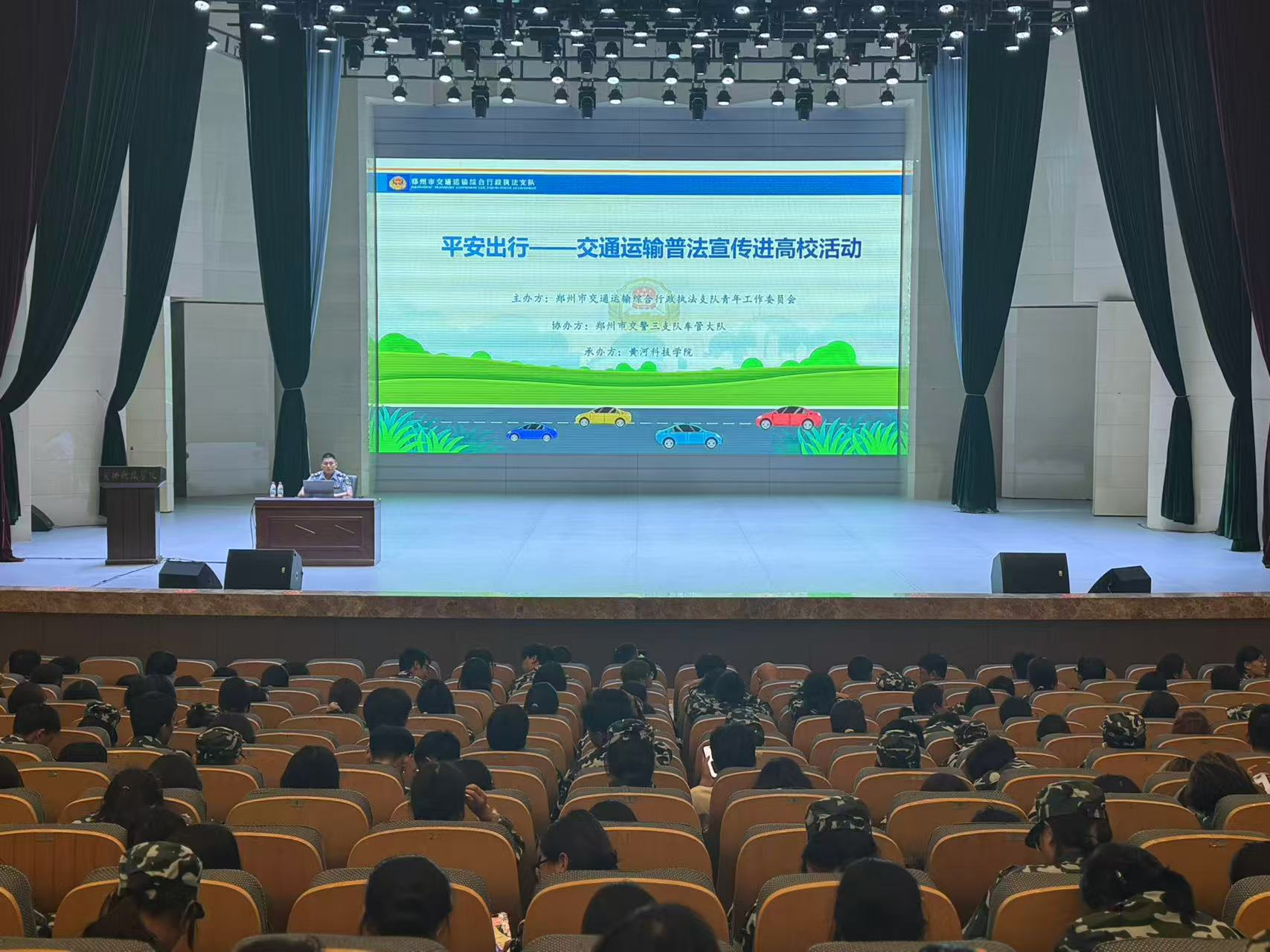 金秋九月,2025级新生已顺利完成报到,开启大学新生活。为迎接“十一”长假出行高峰,提高新生交通安全意识和自我防护能力,9月18日,郑州市交通运输综合行政执法支队“执法先锋”宣讲团走进黄河科技学院,面向千余名大一新生开展了一场别开生面的普法宣传活动。