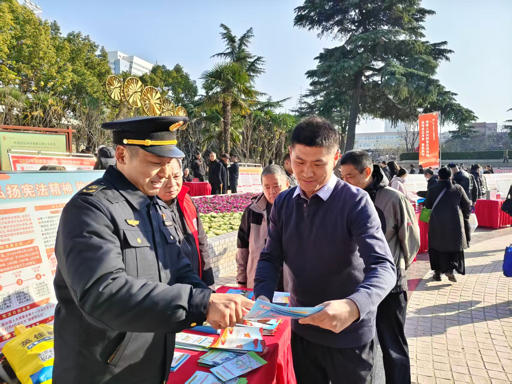 12月4日至5日,执法支队积极组织执法人员参加在紫荆山公园开展的2025年全市“宪法宣传周”集中宣传活动。执法人员人员通过悬挂横幅、摆放展板、发放宣传资料、等方式,向群众普及宪法知识。现场设立的法律咨询台前,执法人员化身法治宣传员,向过往群众讲解宪法以及交通运输相关知识,针对群众关心的热点问题和法律咨询,用心为群众解答疑问。本次活动共发放宣传单1000余页,解答群众法律问题40余人次。