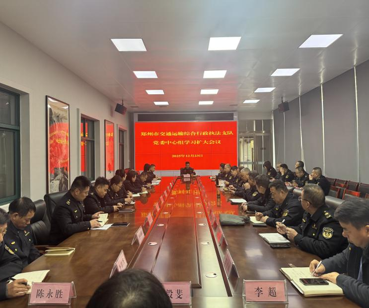 为深入学习贯彻党的二十届四中全会及省、市相关全会精神,切实把思想和行动统一到上级决策部署上来,推动郑州交通执法工作高质量发展,12月23日,郑州市交通运输综合行政执法支队在支队会议室组织召开党委中心组2025 年第12次集中学习扩大会议。支队党委中心组成员及中层正职以上人员参加会议,执法支队党委书记、支队长李海琛主持会议。