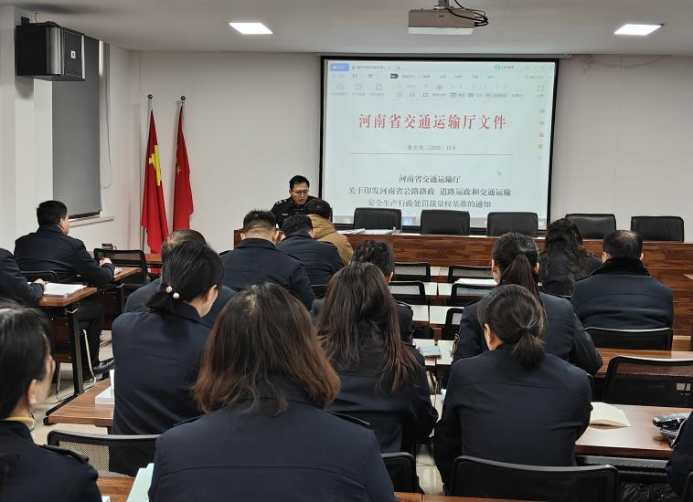 本次培训精准传达《河南省交通运输厅关于印发河南省公路路政道路运政和交通运输安全生产行政处罚裁量权基准的通知》《河南省交通运输厅关于印发河南省交通运输不予行政处罚事项清单等四张清单的通知》(均为[2025]15 号)文件核心要求。法制科科长吕浩然聚焦2025年修订版裁量基准,对比新旧版本,讲解裁量阶次、适用条件等关键调整,结合车辆维护检测、定线运输、超限超载放行等常见疑难案例,剖析执法裁量易错点,解答“道路运输经营者” 认定、“首违不罚”操作等问题,同时解读“四张清单”相关判定要点,防范“同案不同罚”。
