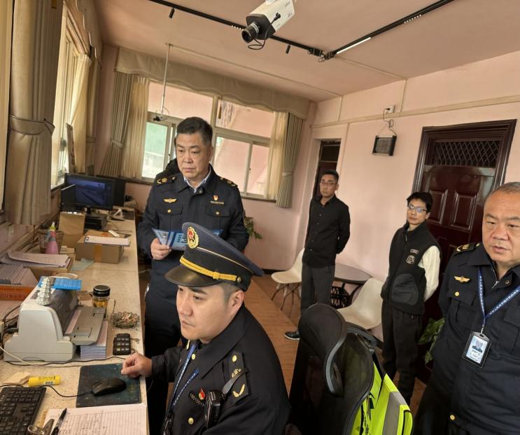 执法人员一行抵达企业后,首先依据相关法律法规对企业运营资质、安全管理制度建立与落实情况进行了系统核查,确保企业在准入层面符合规范。随后,检查重点转移至企业装载作业的核心区域——磅房。执法队员对地磅的周期性检定证书、设备本身运行状态、日常维护记录进行了细致查验,确保计量准确可靠。