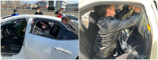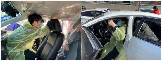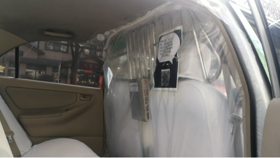 与此同时,巡游出租车也采取了此种措施,希望为乘客以及自身的安全提供更好的保障。郑州市出租汽车行业协会吴先玉会长、副秘书长朱文亚以及优秀驾驶员代表豫AT3077驾驶员阴松强,依靠巡游出租车内的防护网,摸索制作出巡游车的“安全舱”。做法很简单,用透明塑料膜和拉链胶带就能做成,塑料膜两边顺着后车门压到密封条内,顶部用拉链胶带密封好,下面压到后排脚垫底下,这样就把出租车的前后排彻底隔离,谈话、扫码、视线都不受影响,每个成本约十几元,在疫情期间用接地气的“土法儿”大大提高了司乘双方的安全。