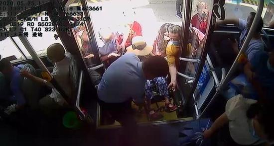 5月25日上午11:11分,郑州8路公交车长安红卫带领徒弟肖杨行驶至大石桥站时,一位女士用轮椅推着一位八旬老人准备上车,安车长看到后一边下车帮忙推着轮椅一边告诉乘客从后门上车,徒弟肖杨也赶紧从驾驶位上下来走向后门准备将老人接上来,这时在站牌等车的一位男士看到后也赶紧走上前帮忙抬轮椅,一位路过的女士也快速跑过来一起帮忙,车厢内的乘客也伸手去拉,在众人的合力帮助下将老人抬上了车厢,上车后车厢内乘客纷纷让座,一位穿白色衣服的女士怕轮椅晃动,也一直用手握着轮椅,直到老人下车。