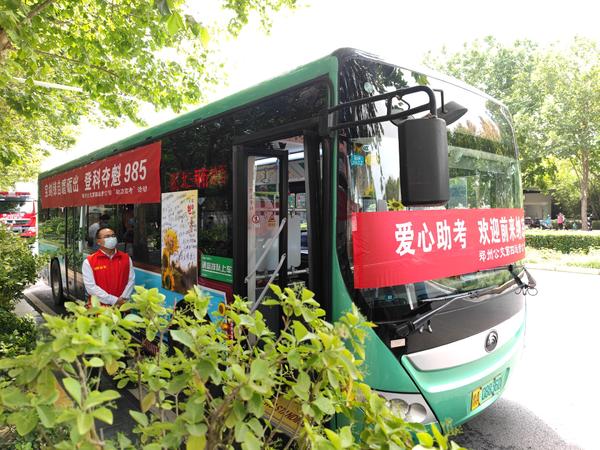 在郑州二十四中考点附近停放的公交车,不仅为广大考生和家长提供着优质的服务,更是为他们带去了美好的寓意。