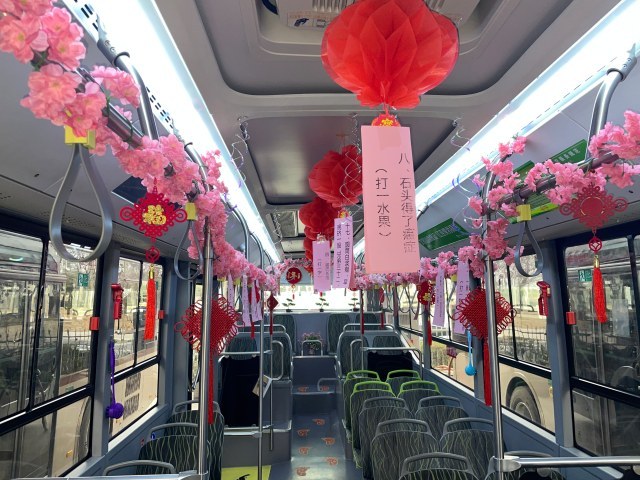 元宵节马上就要到了,为了弘扬民族文化,让乘客在公交车上也能欢度一个温馨、愉悦的元宵佳节,43路公交车长何雪平再次将自己的车厢装扮成了猜灯谜的会场,邀请全市人民前来打卡。