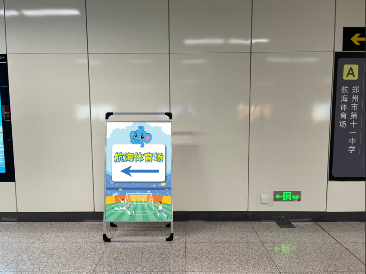 特色指引告示,跟着晶晶不迷路。车站在站厅付费区、A口通道及站外摆放专用指引告示,车站录制的专属暖心广播为您的出行保驾护航。车站在A口通道及站厅对应柱子上张贴乘车码指引告示,球迷朋友们可以通过告示指引提前打开乘车码,快速、有序进出站,畅通您的回家之路。中原福塔站无障碍电梯和客服中心处设置爱心通道及指引告示,不间断地为“老弱病残孕幼”等重点乘客提供爱心扶助。