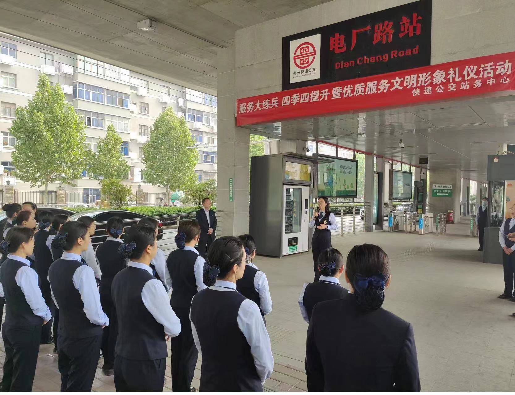 一年一度的黄帝故里拜祖大典即将举办,为应对客流高峰,提升市民乘客出行品质,打造公交城市文明服务的示范窗口,提升精细化管理水平和服务技能,近日,郑州快速公交站务长们在农业路电厂路站台,开展了“‘服务大练兵 四季四提升’暨优质服务文明形象礼仪”活动,邀请全国劳动模范曹瑞娟老师围绕服务礼仪进行现场授课。