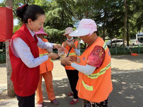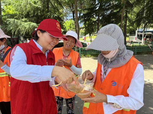 临近中午,郑州的室外温度已接近38度,“师傅们快过来,这边有绿豆汤可以解暑……”在凯旋路公交站台附近,一群身穿红马甲的志愿者一边招呼着,一边将早早熬制好的绿豆水分装后摆放整齐,依次递给路过的环卫工等户外工作者,让他们解暑降温。原来是郑州公交集团“虎萍党员帮帮团”正在开展“高温心系环卫工炎炎夏日送清凉”志愿服务活动,感谢环卫工等户外工作者在炎炎夏日里的坚守和奉献。