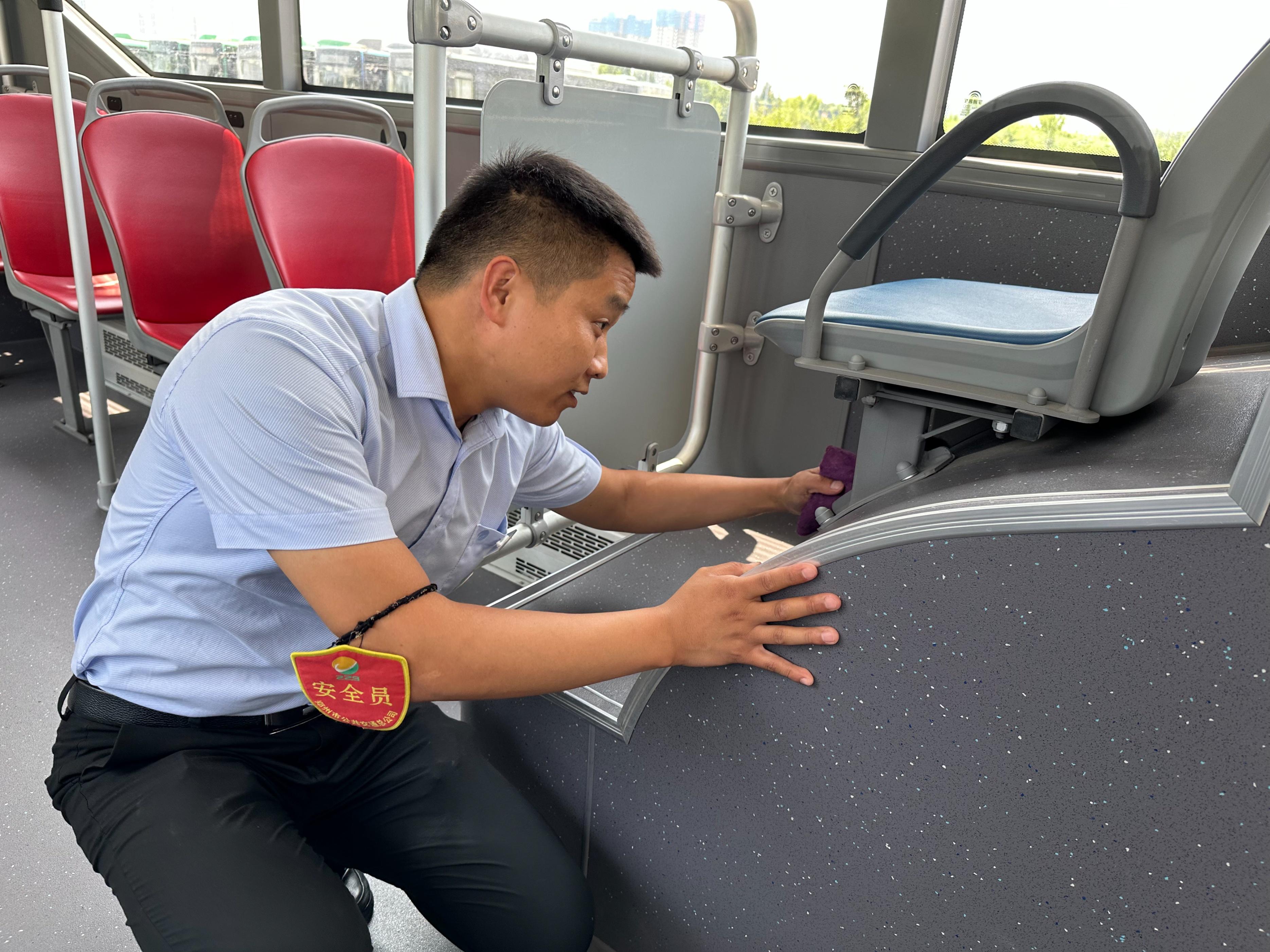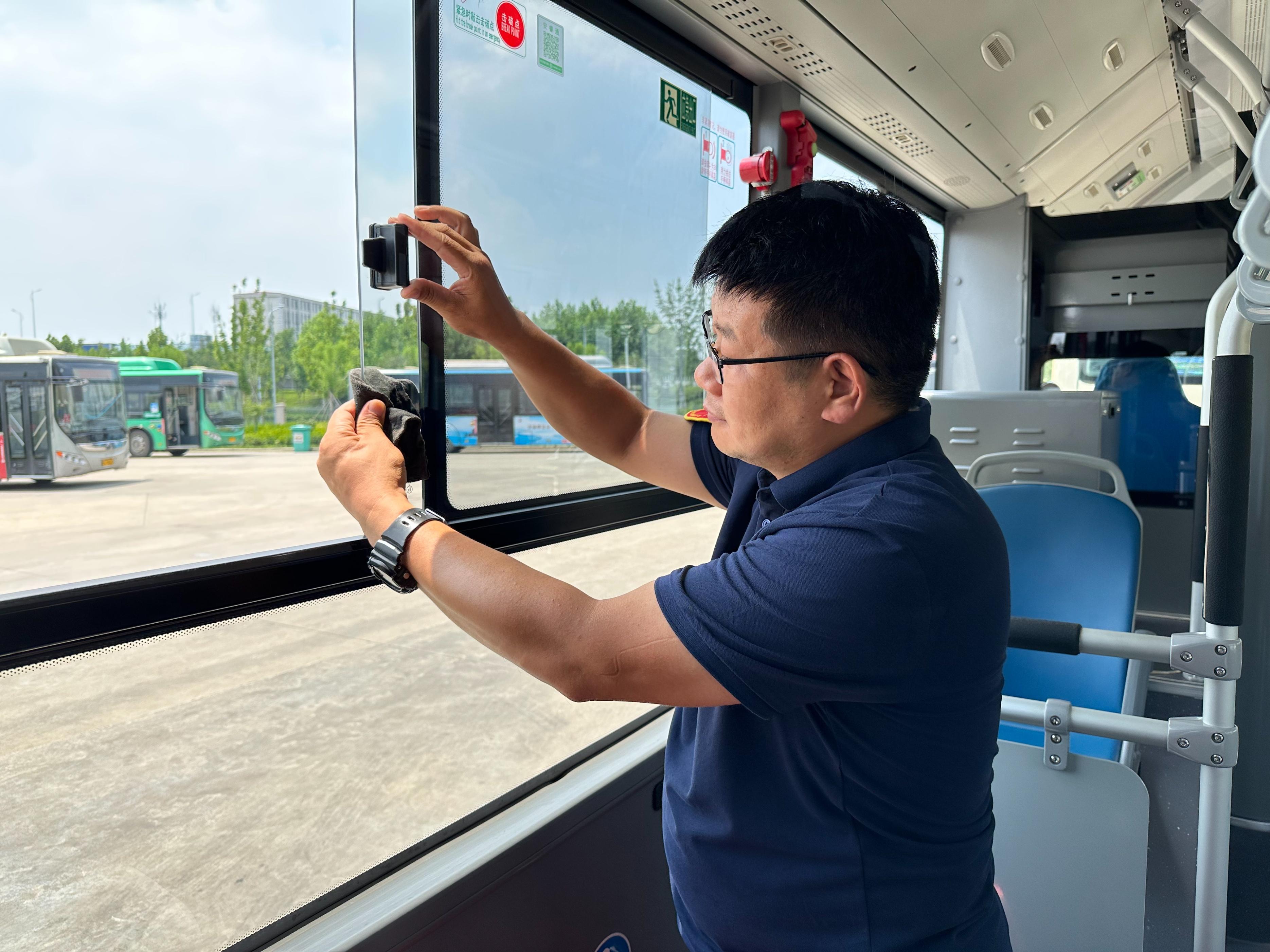 在各大公交场站内,驾驶员们始终把车辆清洁作为每天工作的重点内容之一,不仅出场前按照清洁标准对车辆内外进行全面彻底清洁,对于车厢座椅、扶手、拉杆、地板等进行重点擦拭,同时,驾驶员们还自制清洁小工具,对座椅下方角落缝隙等卫生死角进行“全方位”清理,使整个车辆整洁明亮,焕然一新。