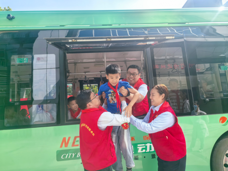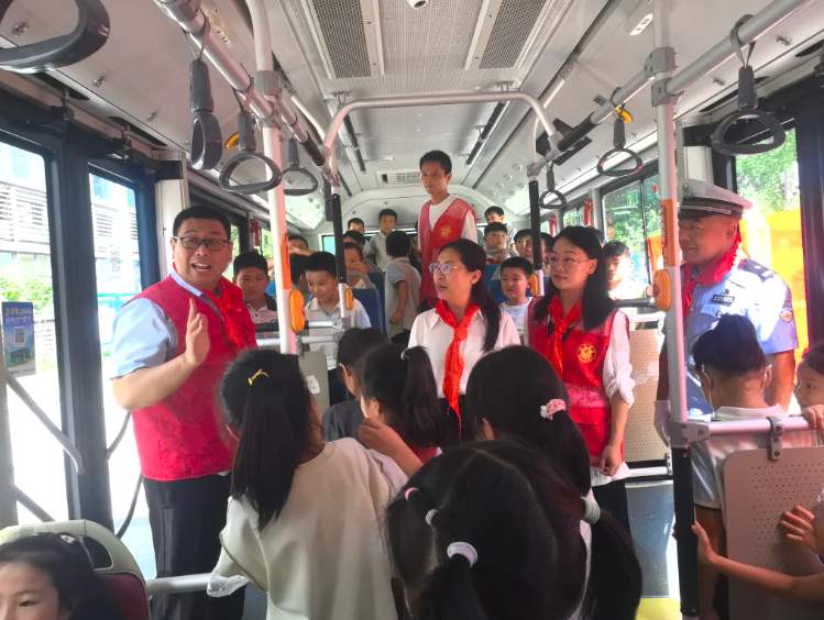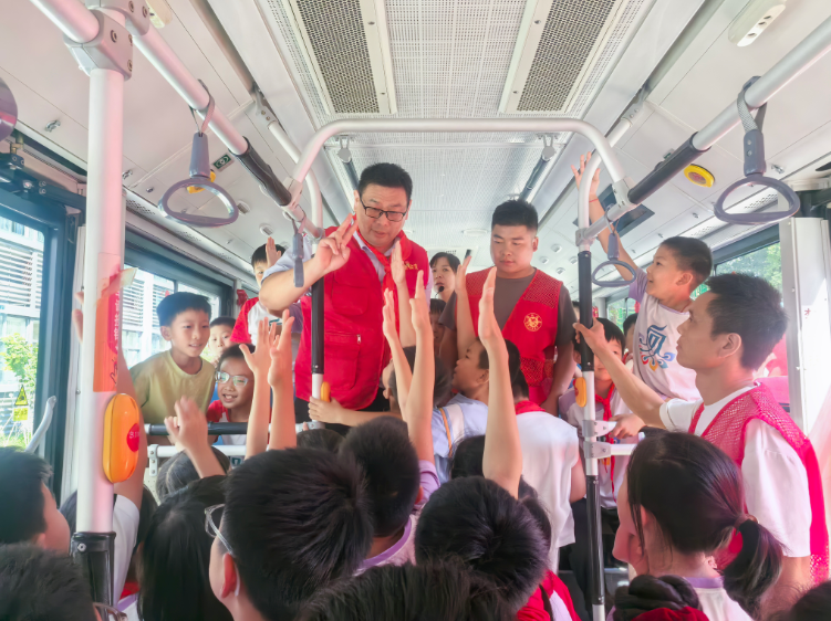 在“移动安全课堂”公交车厢内,公交志愿者们化身“文明引导员”,手把手教同学们遇到危险如何逃生自救,并结合校园周边情况,讲解上下车注意事项。通过现场模拟公交车长视角,同学们直观了解了“鬼探头”和车辆盲区带来的危险,让学生们深刻认识到安全出行的重要性。