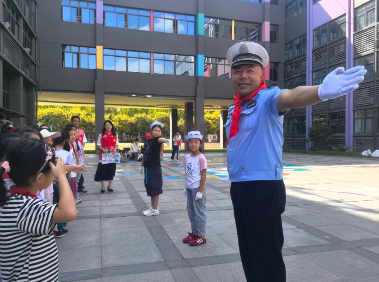 活动现场,交警十二支队指导员靳红勇化身“安全导师”,结合校门口路段车辆往来频繁、学生密集等实际情况,用鲜活的案例和生动的语言,详细讲解横穿马路、随意追逐打闹等行为的危害性。在模拟指挥体验环节,孩子们头戴警帽,在交警指导下学习直行、停止等交通指挥手势,通过角色扮演加深对交通规则的理解,校园操场瞬间变成充满活力的“安全课堂”。