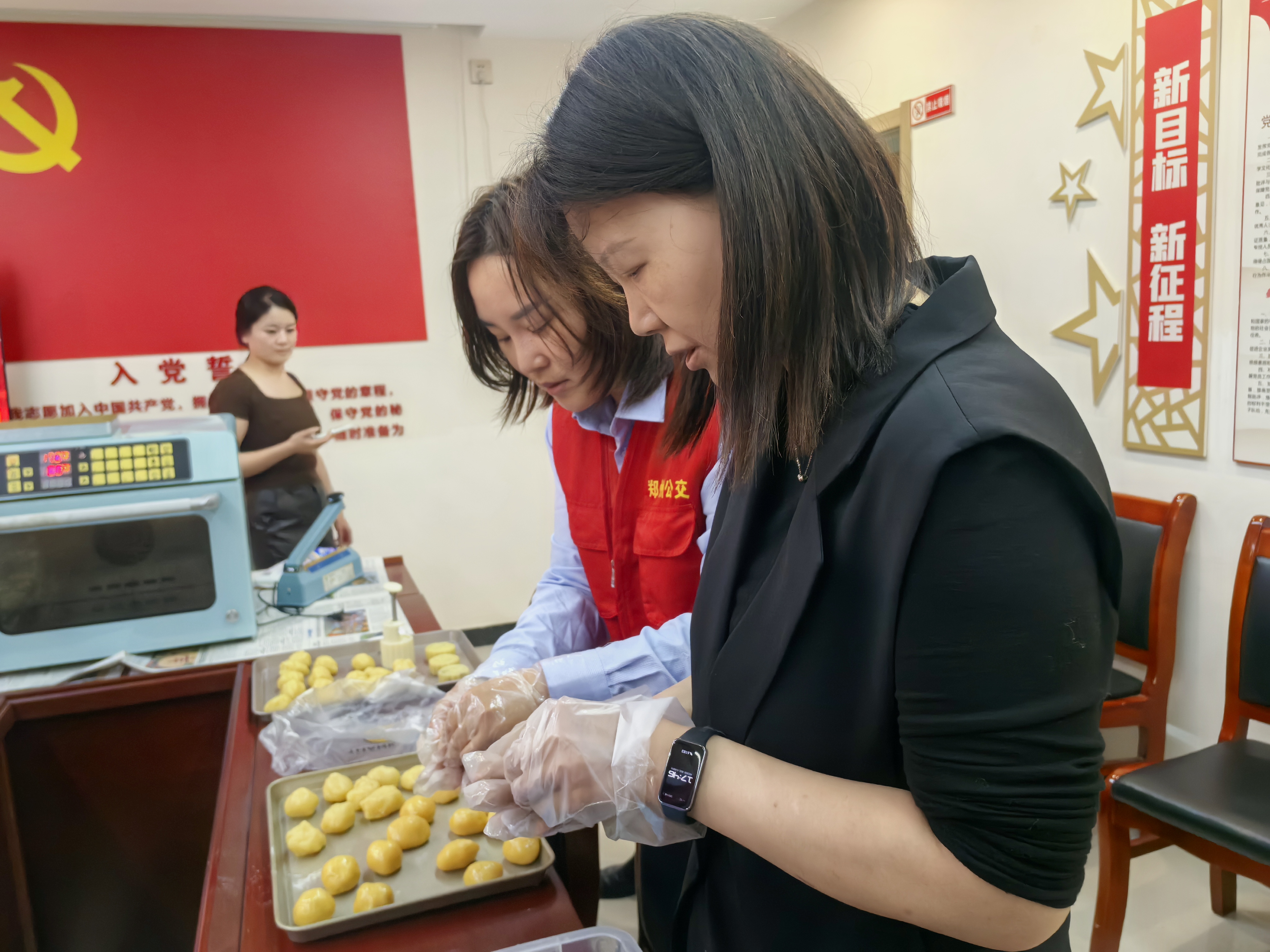 活动开始,志愿者与社区居民围坐一堂,共同参与手工包月饼活动。大家分工协作,揉面团、包馅料、压模具,一个个精致的月饼在欢声笑语中成型。现场气氛热烈,其乐融融,不仅让居民们感受到了浓厚的节日氛围,也拉近了彼此之间的距离。
