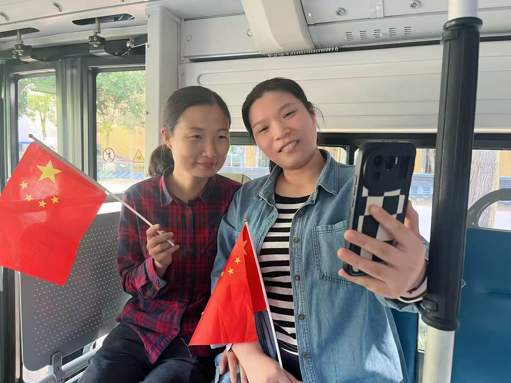 走进田媛媛驾驶的G126路公交车厢,乘客便会收到田媛媛赠送的小红旗。有的刚接过红旗,便拿出手机自拍起来,周围的乘客纷纷效仿,车厢里的氛围越来越热烈,人们主动互相交流起来。平日里安静的车厢此刻变成了一个充满温情的“移动祝福站”。一面面小红旗在大家的手中飘扬,成了车厢里最亮眼的风景线。