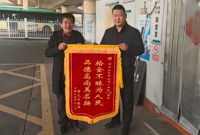 【郑州广播电视台会面客户端】暖心!公交车长拾金不昧,“迟到”锦旗表谢意