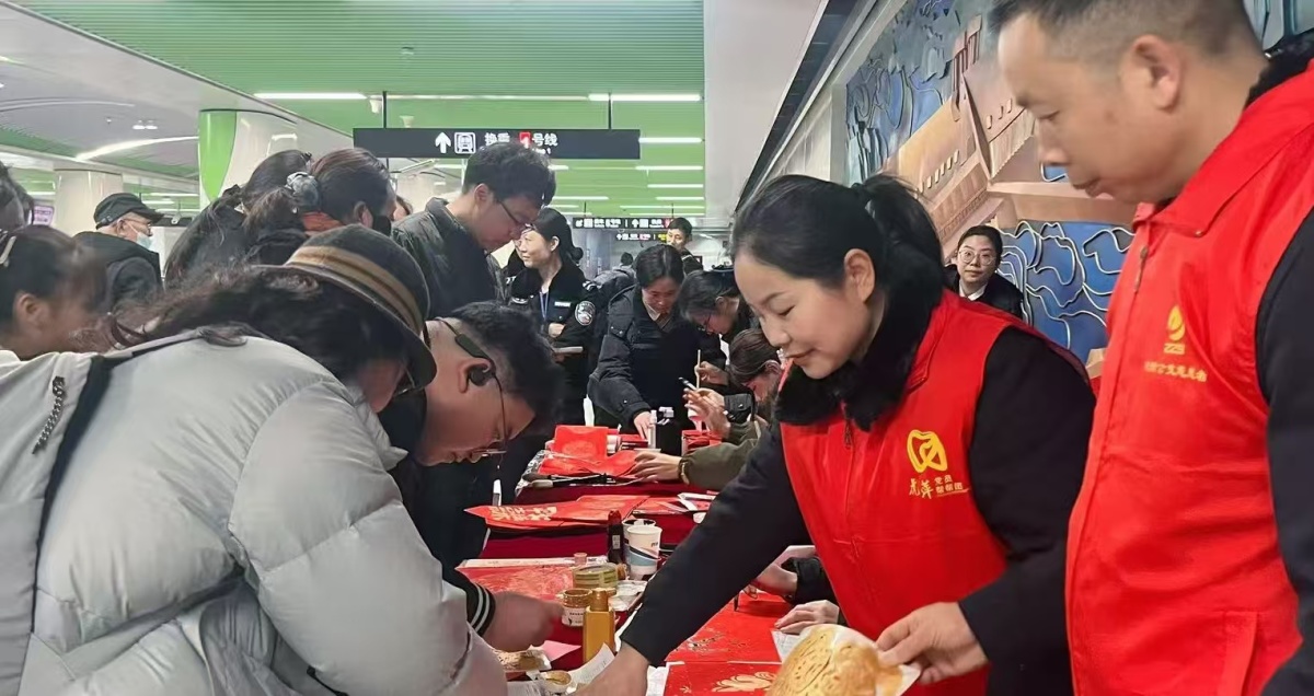 “我想要一副带‘马到成功’的春联!”“小朋友要不要试试亲手拓个福字?”活动现场,志愿者们耐心指导市民拓印福字。拓印板下,一张张带着肌理质感的“福”字跃然纸上,不少市民举着自己亲手创作的作品拍照留念,脸上洋溢着幸福的笑容。另一边,书法家们纷纷将毛笔饱蘸墨汁,在大红的对联纸上笔走龙蛇执笔书写,不一会儿,一副副寓意吉祥的春联新鲜出炉,志愿者们将撰写春联福字赠予乘客,并与乘客们积极互动。收到带着墨香的新春礼物,市民都喜笑颜开,纷纷点赞。“手写的春联、亲手拓的福字才有年味儿,还能感受到传统文化的魅力,这个活动太有意义了!”刚带着孩子拓完福字的市民杨女士笑着说。