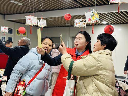 活动现场张灯结彩,红彤彤的灯笼在活动区域高高挂满,写有谜题的彩纸悬挂其间。灯谜涵盖传统文化、生活常识及出行知识,兼具趣味与知识性,吸引过往乘客驻足参与。大家或凝神思索、或相互探讨,欢声笑语不断,猜中者喜获礼品,脸上满是笑意。工作人员还为乘客送上热气腾腾的汤圆,以暖心服务传递节日温情。