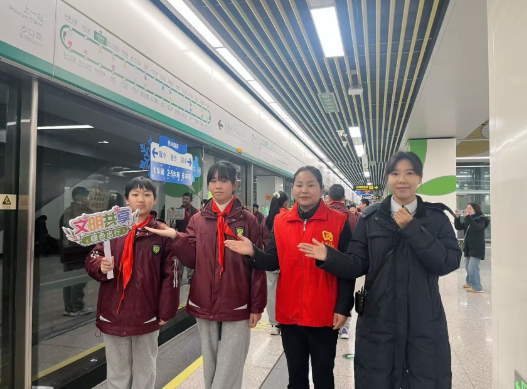 随后,在志愿者与老师的带领下,同学们化身“小小志愿者”,开展沉浸式岗位体验。大家分组来到站厅、闸机、站台等区域,在工作人员指导下文明引导乘客、协助购票、提醒安全候车、帮扶特殊乘客,用稚嫩的双手与真诚的微笑传递温暖。一位同学说道:“今天我才知道,帮助别人是这么开心的事,我也要做新时代的小雷锋。”
