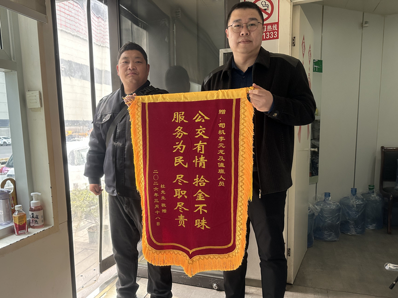 一面锦旗,不仅是失主的谢意,更是对公交车长职业素养的肯定。这份拾金不昧的善举,如同城市里的一缕暖阳,彰显了公交人的高尚品德,也让文明之风在细微处传递。