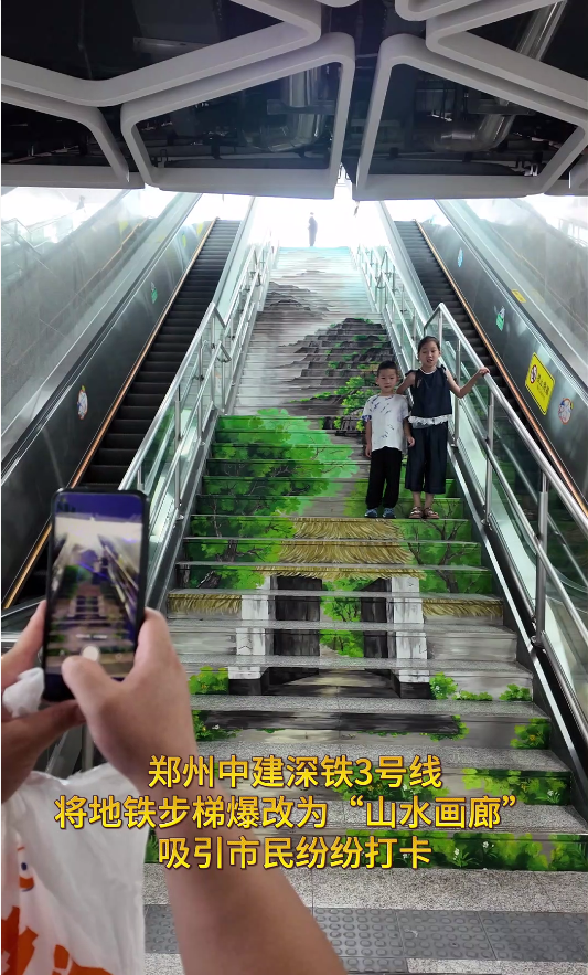 站务员手绘“山水阶梯” 地铁车站变身治愈画廊