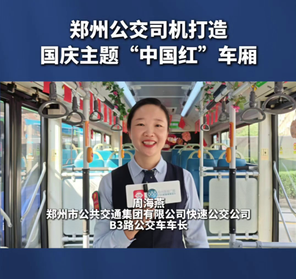 十米车厢“国旗红” 郑州公交司机打造“国庆主题公交”