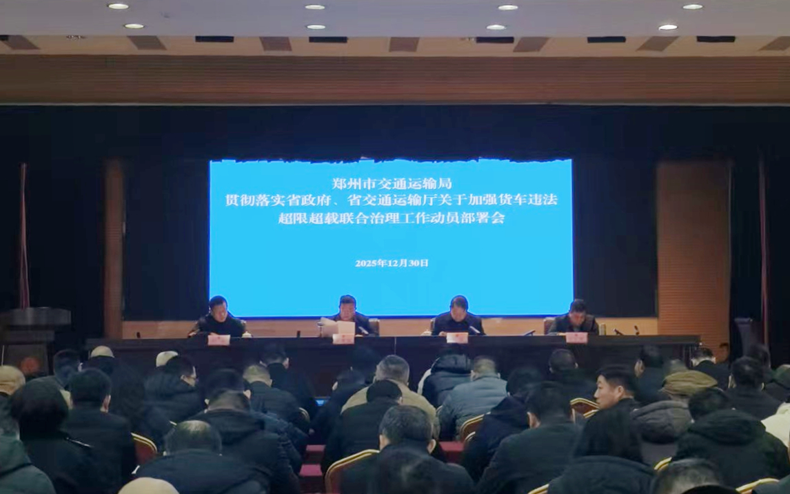 为贯彻落实省政府、省交通运输厅关于加强货车违法超限超载联合治理工作的相关要求,2025年12月30日上午,郑州市交通运输局召开货车违法超限超载联合治理工作动员部署会。局法规处、行政审批办公室、运输管理处;市运输事业发展中心、市交通运输综合行政执法支队主要领导及各辖区执法大队大队长;各开发区、区县(市)交通运输局分管领导、相关科室及运输事业发展中心、执法大队相关人员参加了会议。