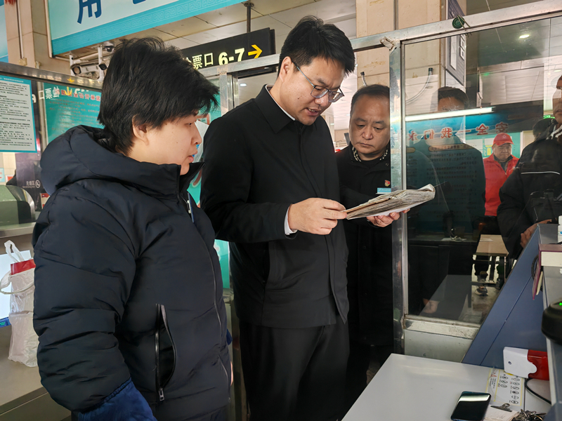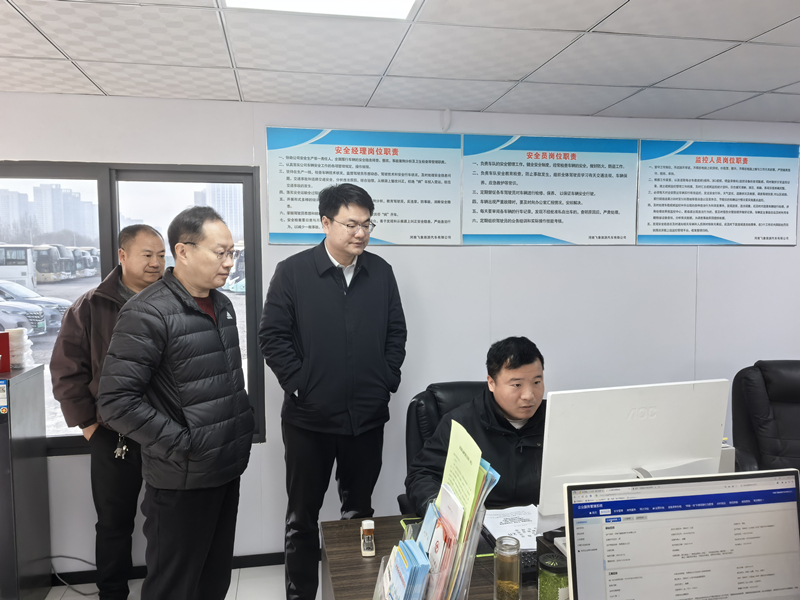 按照局党组书记、局长杨振茂同志要求,结合春运春节交通运输安全生产形势特点,2月12日上午,局党组成员、一级调研员乔兴国、副局长李志恒带领运输处、安监处负责同志继续在重点运输企业和场站开展安全生产督导检查。