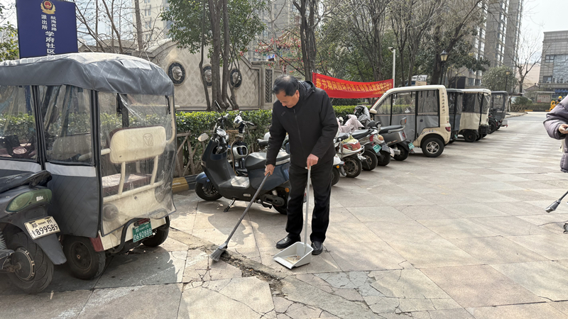活动现场,志愿者们身穿红马甲,手拿铁锹、扫帚等清扫工具,分工协作、默契配合,以饱满的热情积极投入到活动中,有人俯身清扫地面落叶纸屑,有人仔细清理护栏绿化带内的杂物,有人卖力将乱停乱放的非机动车逐个进行归位。经过一个多小时的埋头苦干,小区内及周边卫生环境得到了很大的提升。整理完卫生后,党员志愿者们与社区工作人员一起为社区行动不便的老人提供一些力所能及的帮助,倾听他们的实际困难和需求,叮嘱他们保重身体健康。