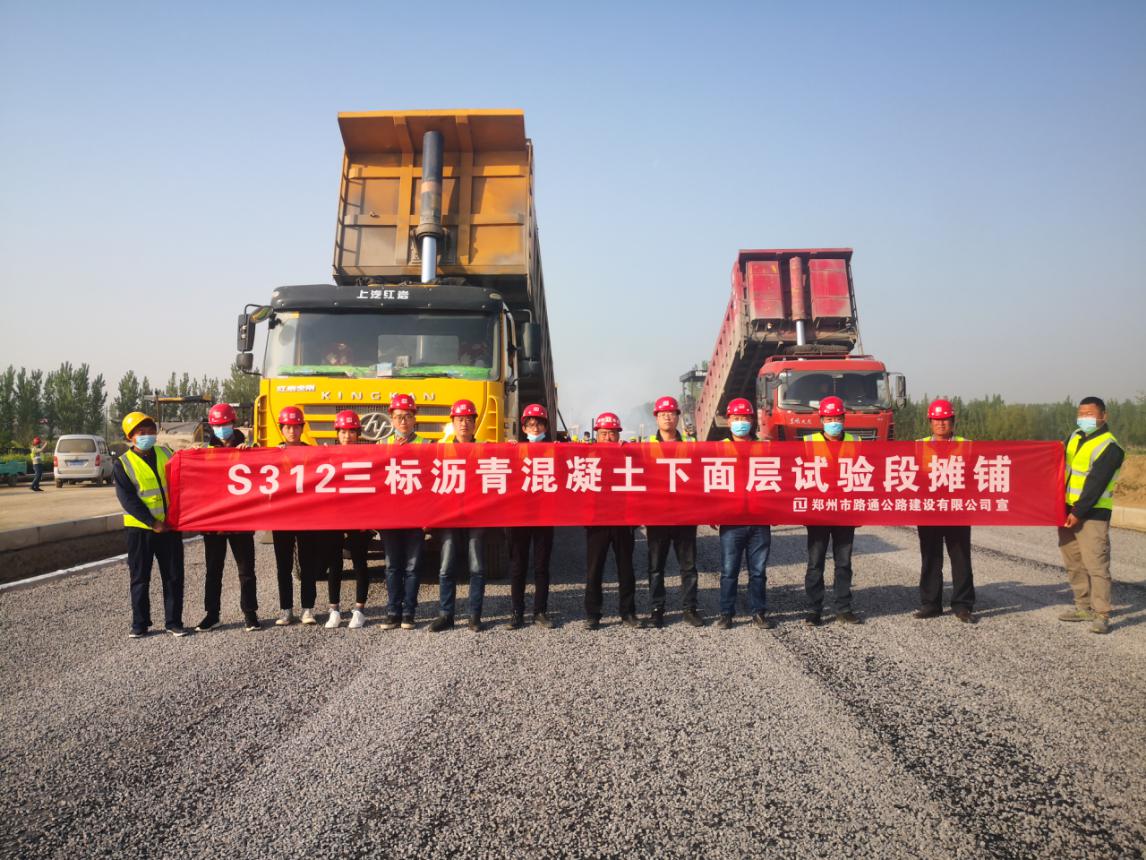 近日,S312郑州境改建工程(郑汴交界至G107东移段)三标在K18+700-K18+900段右幅进行沥青混凝土下面层(AC-25C)试验段摊铺作业,正式拉开了该标段面层施工的帷幕。