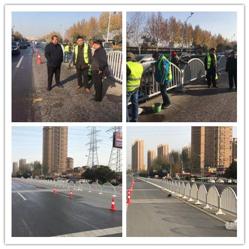 经过现场勘测,结合实际交通状况预留护栏断口后,该司迅速组织施工队伍进驻现场,一队由商都路与万三路开始向西进行护栏施工安装,二队由列子故里开始向东进行施工安装。施工过程中,业主李遂生副局长到现场指导监督工作,针对现场施工质量、安全、进度做出详细工作指导,对现场工作存在提升空间的地方提出了引导性方案。