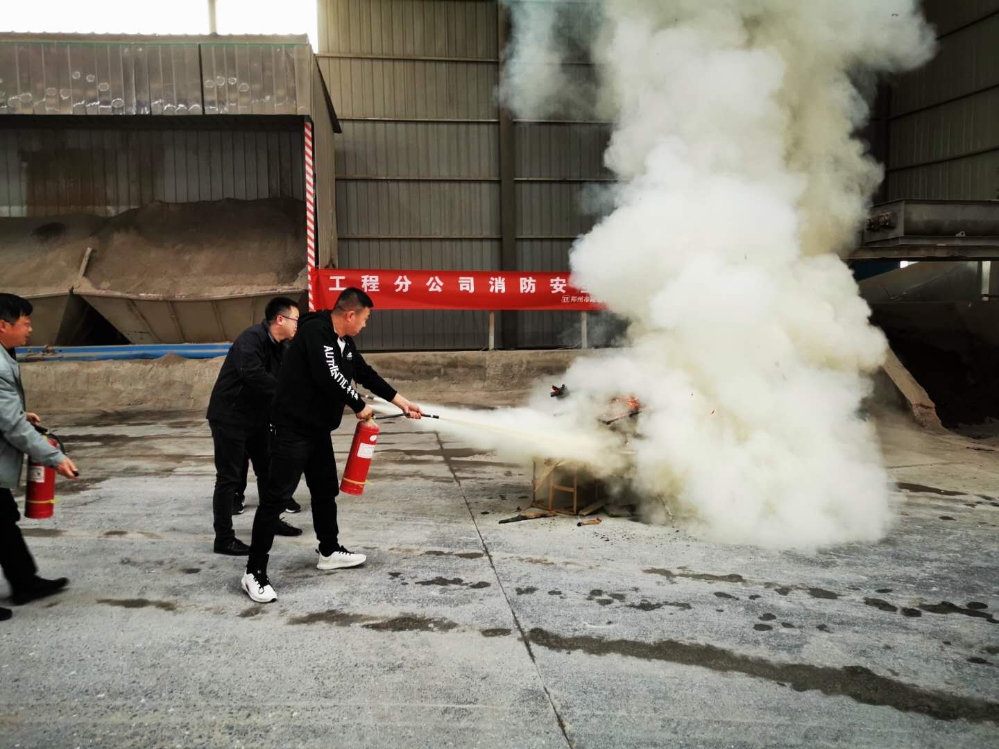 在灭火演练中,该司安全法务部指导大家手持干粉灭火器对准火源根部由远及近进行扫射扑灭火源的实际操作,提高了员工扑救初期火灾的能力。整场演练紧张有序,达到预期目的。